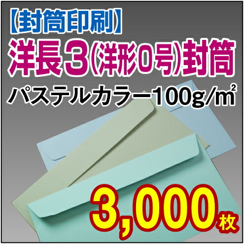 【封筒印刷】洋形0号(洋長3)封筒 パステルカラー〈100〉 3,000枚【送料無料】 洋0 洋長3 封筒 印刷 名入れ封筒 定形封筒